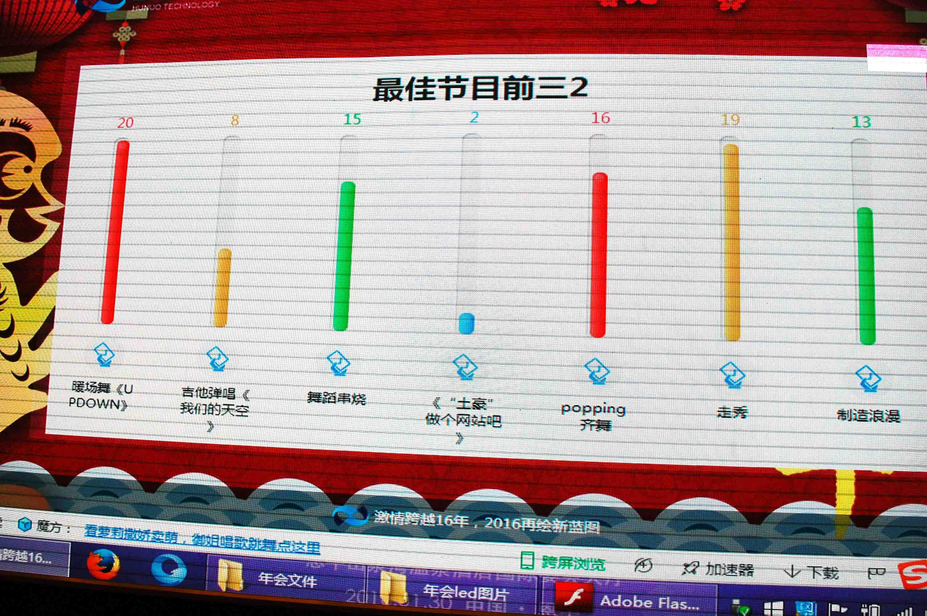 本次年会精彩纷呈,高潮迭起,整个现场充满了激情、热烈、活跃的气氛。员工们还自创自演了丰富多彩的文艺节目,吉他弹唱、性感爵士、帅气popping 、舞蹈串烧、自编小品、走秀等等,给大家带来了精彩表演,现场气氛异常热烈,台下观众的掌声雷鸣。年会重头戏——抽奖活动,也穿插在五彩缤纷的节目表演中,本次抽奖人人有份,都不落空,随着层层大奖的抽取,不断掀起年会的高潮,三等奖,二等奖,一等奖被三位幸运儿收入囊中。丰富多彩的游戏,更是将年会推向高潮。最后,当然是少不了对每一位员工的嘉奖啦,总经理颁发年终奖,整个年会在和谐、温馨、激情、欢乐的气氛中圆满落下帷幕。