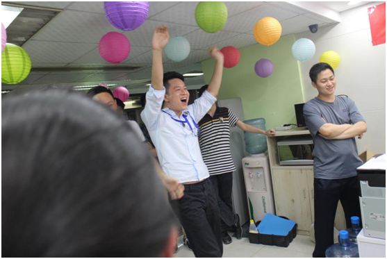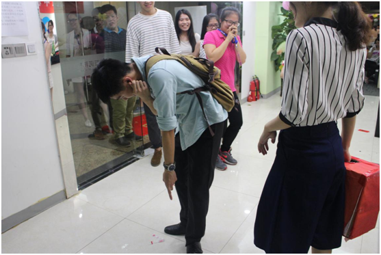 活动上准备了许多有趣的小游戏,同事争相参与,玩得不亦乐乎。赢得游戏的人可以获得一次抽奖机会,而抽奖箱里却埋伏了一些小小的惩罚。同事们为了争取游戏胜利,通力合作,你追我赶,气氛一下子活跃起来。到了抽奖环节,抽到奖品的同事手舞足蹈,抽到惩罚的人则是哈哈一笑,配合着镜头完成了惩罚。整个游戏过程其乐融融,大家及感受到团结带来的成就感,也感受到互诺大家庭的温馨,喜乐。