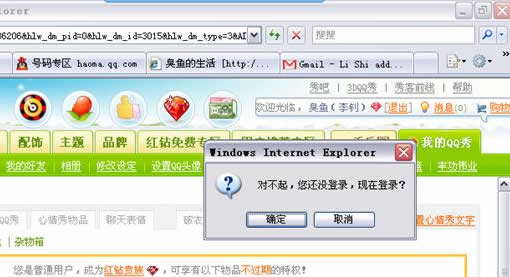 以下是QQ秀商城在非登录时提示登录的一种状态。当我在非登录状态,通过保存形象的方式买一件衣服时,弹出登录对话窗口提示登录。此时,登录对话窗口锁定商城页,锁定IE,只有当对登录窗口进行操作后,才能够进行其他操作。譬如:最小化IE、浏览商城等。我们可以说,登录对话窗口就是一种模式化窗口。